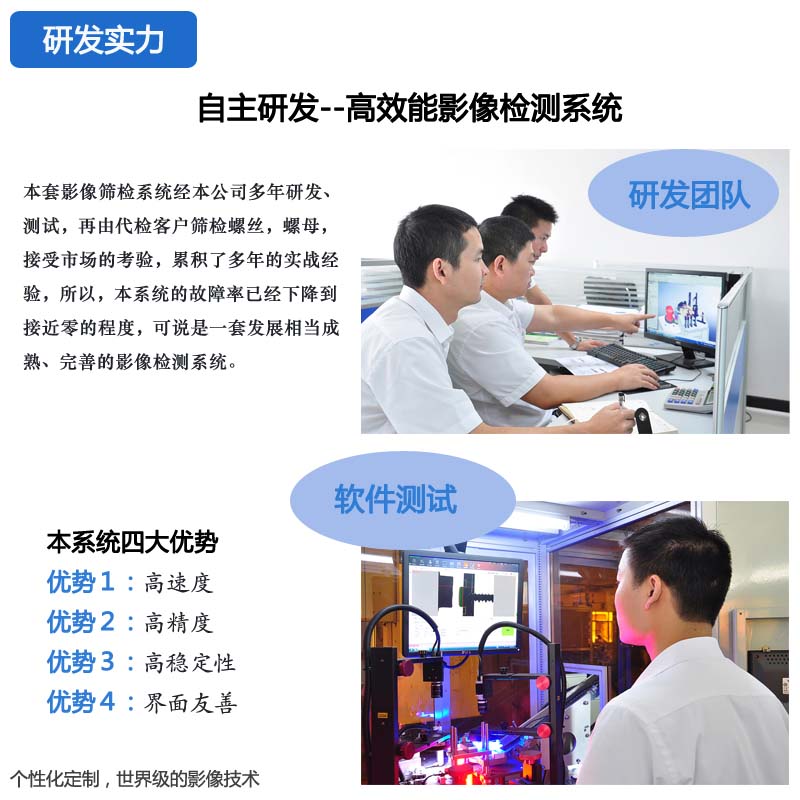 設(shè)備檢測(cè)范圍寬:可以檢測(cè)螺絲、螺母、手機(jī)零配件、汽車配件、航空緊固件、塑膠產(chǎn)品、磁芯產(chǎn)品等。