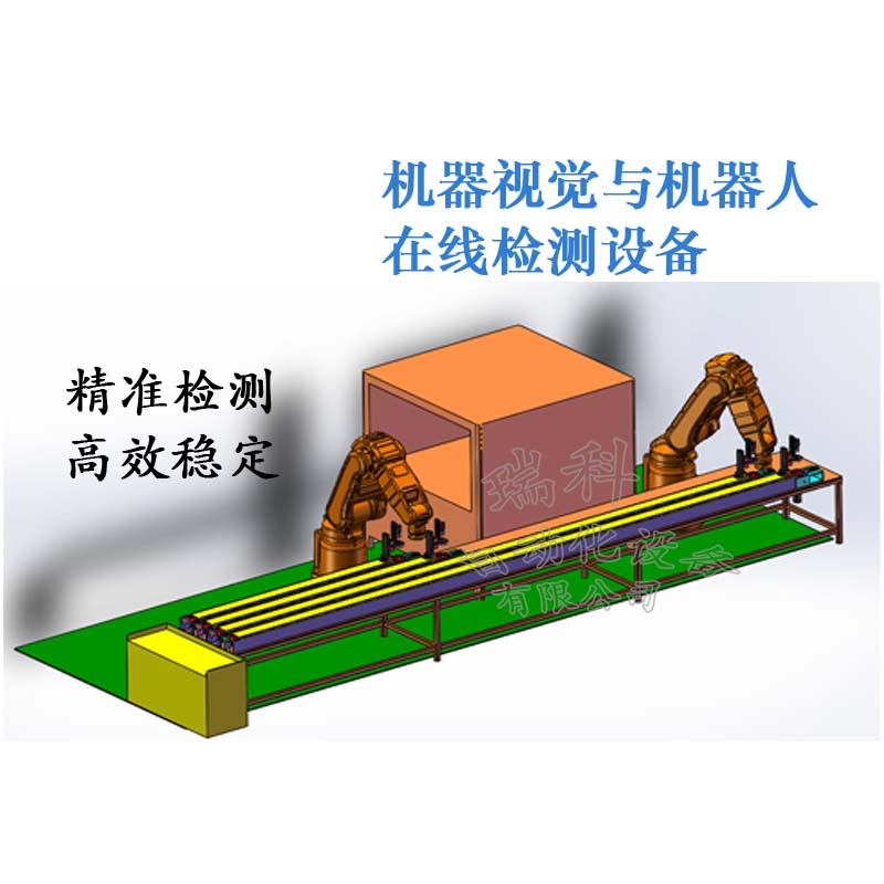 瑞科的機(jī)器視覺圖像處理系統(tǒng)與機(jī)器人組合即可在線對(duì)產(chǎn)品生產(chǎn)過程中產(chǎn)生的各種尺寸及表面問題進(jìn)行高速、精準(zhǔn)的檢測(cè)。