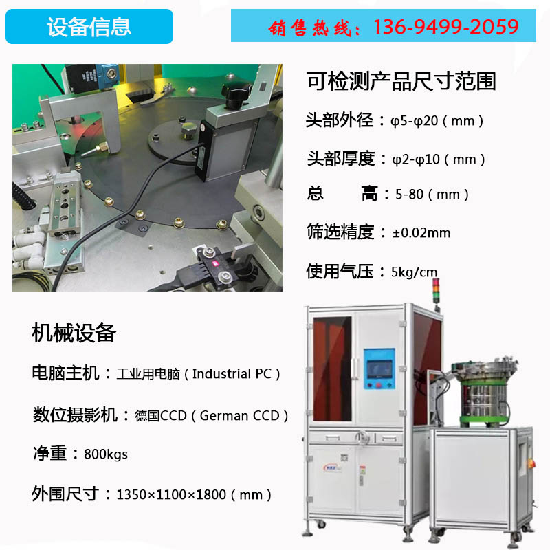水平 | 檢測(cè)產(chǎn)品的頭部直徑、多段高度頭厚 |
