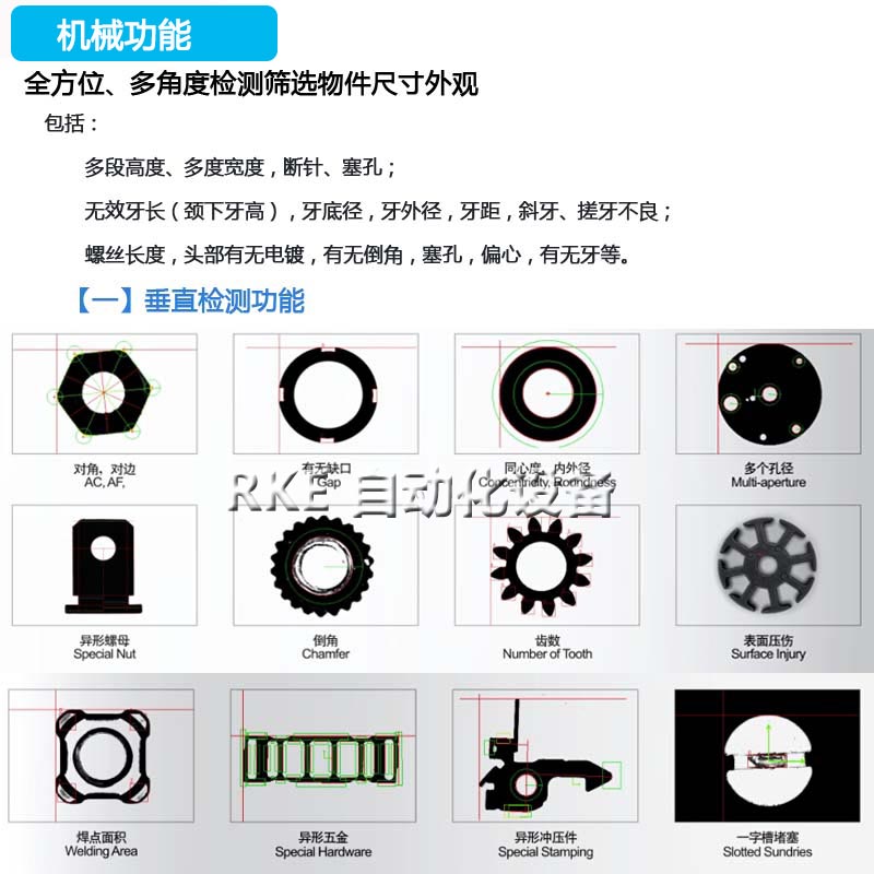 檢測(cè)產(chǎn)品外觀、長(zhǎng)度、高度、螺牙、頭裂等。 |