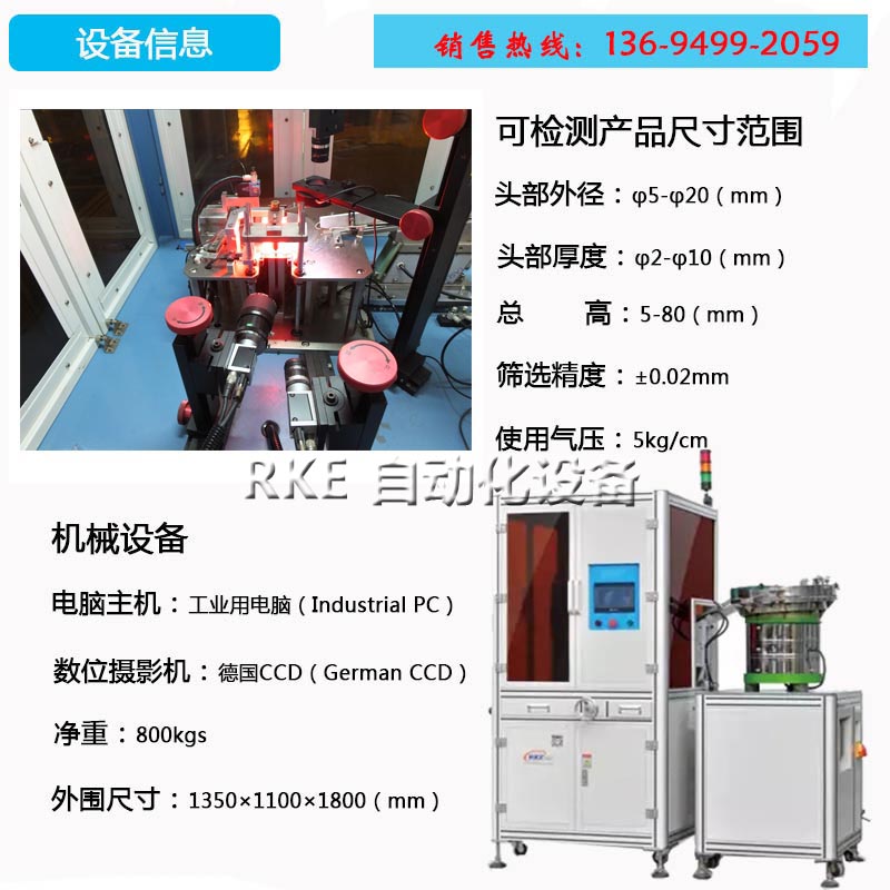 檢測產(chǎn)品的頭部直徑、多段高度、頭厚、牙外徑、垂直度、搓牙不良 |