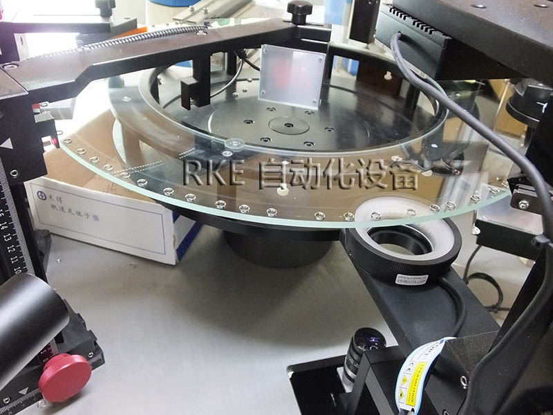 CCD視覺檢測(cè)五金環(huán)產(chǎn)品,利用玻璃的透光性,把物品放在玻璃盤上進(jìn)行檢測(cè),節(jié)省勞力,檢測(cè)速度快,效率高。